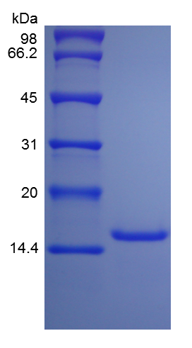 - Approximately 14.3 kDa, a single non-glycosylated polypeptide chain containing 127 amino acids.
