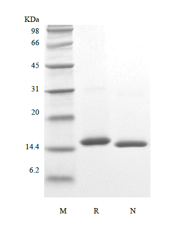 - Approximately 15.2 kDa, a single non-glycosylated polypeptide chain containing 134 amino acids.