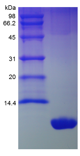 - Approximately 7.8 kDa, a single non-glycosylated polypeptide chain containing 72 amino acid residues.