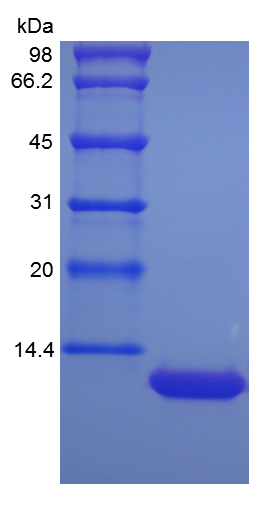 - Approximately 9.8 kDa, a single, non-glycosylated polypeptide chain containing 92 amino acids.