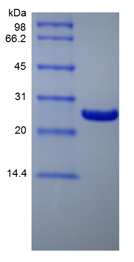 - Approximately 23.7 kDa, a single non-glycosylated polypeptide chain containing 211 amino acids.
