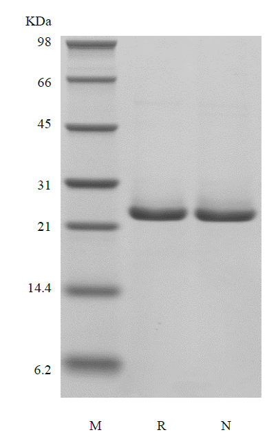 - Approximately 23.2 kDa, a single non-glycosylated polypeptide chain containing 210 amino acids.