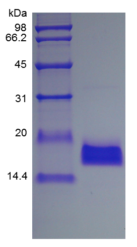 - Approximately 18.2 kDa, a single non-glycosylated polypeptide chain containing 166 amino acids.